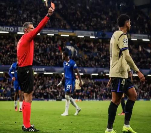 第29分钟,切尔西前场连续进攻,加纳乔禁区左侧爆射被挡出,古斯托禁区右侧抢到皮球再组织进攻回传中路,詹姆斯禁区弧顶处迎球怒射,皮球稍稍高出横梁出了底线。第31分钟,阿劳霍怒喷裁判领到一张黄卡。上半时尾声阶段巴萨再遭重创,阿劳霍在争抢中凶狠铲倒库库雷利亚,主裁不手软,12分钟内给他颁发了第2张黄卡,阿劳霍2黄变1红被罚下场。